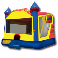 Includes spacious jump area, slide, basketball hoop (inside), challenging wall climb & tall slide.